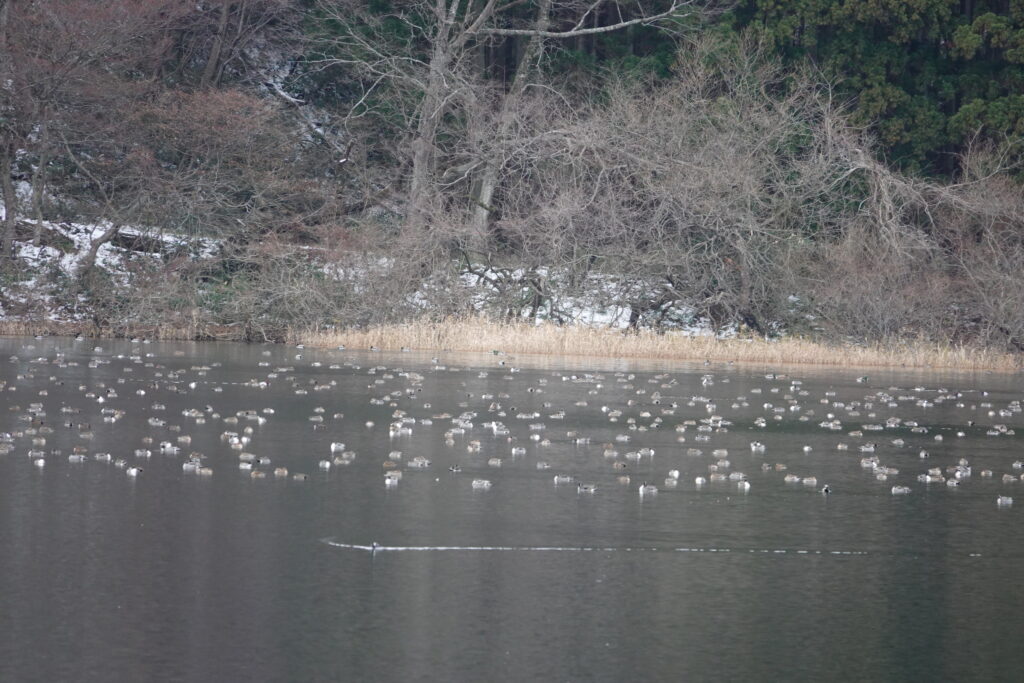 池の奥行きがあるため、かなり奥の方にたくさんのカモ類が泳いでいました。